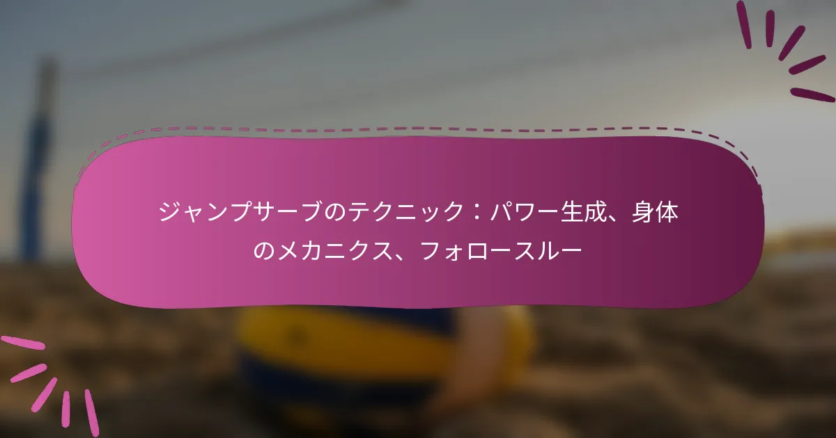 ジャンプサーブは、スピードと精度を組み合わせて得点の可能性を最大化する強力なバレーボールの技術です。重要な技術には、メカニクス、体の位置、フットワーク、タイミングを理解し、効果を高めるために一般的なミスを避けることが含まれます。