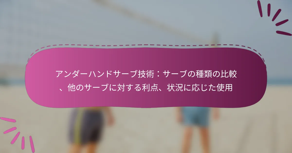アンダーハンドサーブは、テニスとバレーボールの両方で戦略的な選択肢であり、低い軌道と欺瞞的な配置が特徴です。これにより、相手を驚かせることができ、選手のサーブレパートリーに貴重な追加となります。